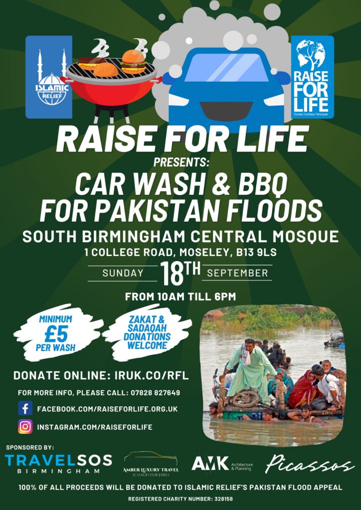 A charity car wash and BBQ has been organised for this Sunday 18th September at South Birmingham Central Mosque, 1 College Road, Moseley, B13 9LS. 10.00am till 6.00pm